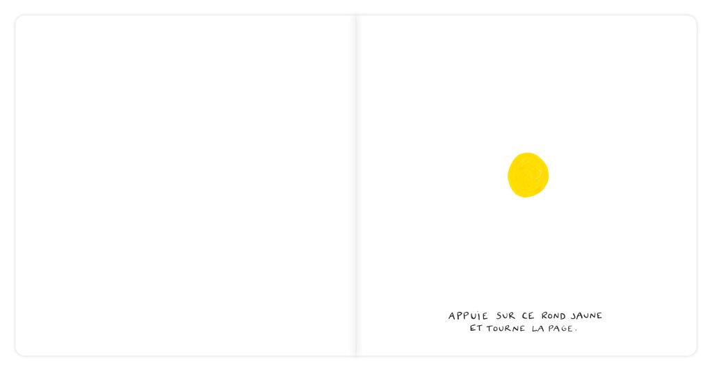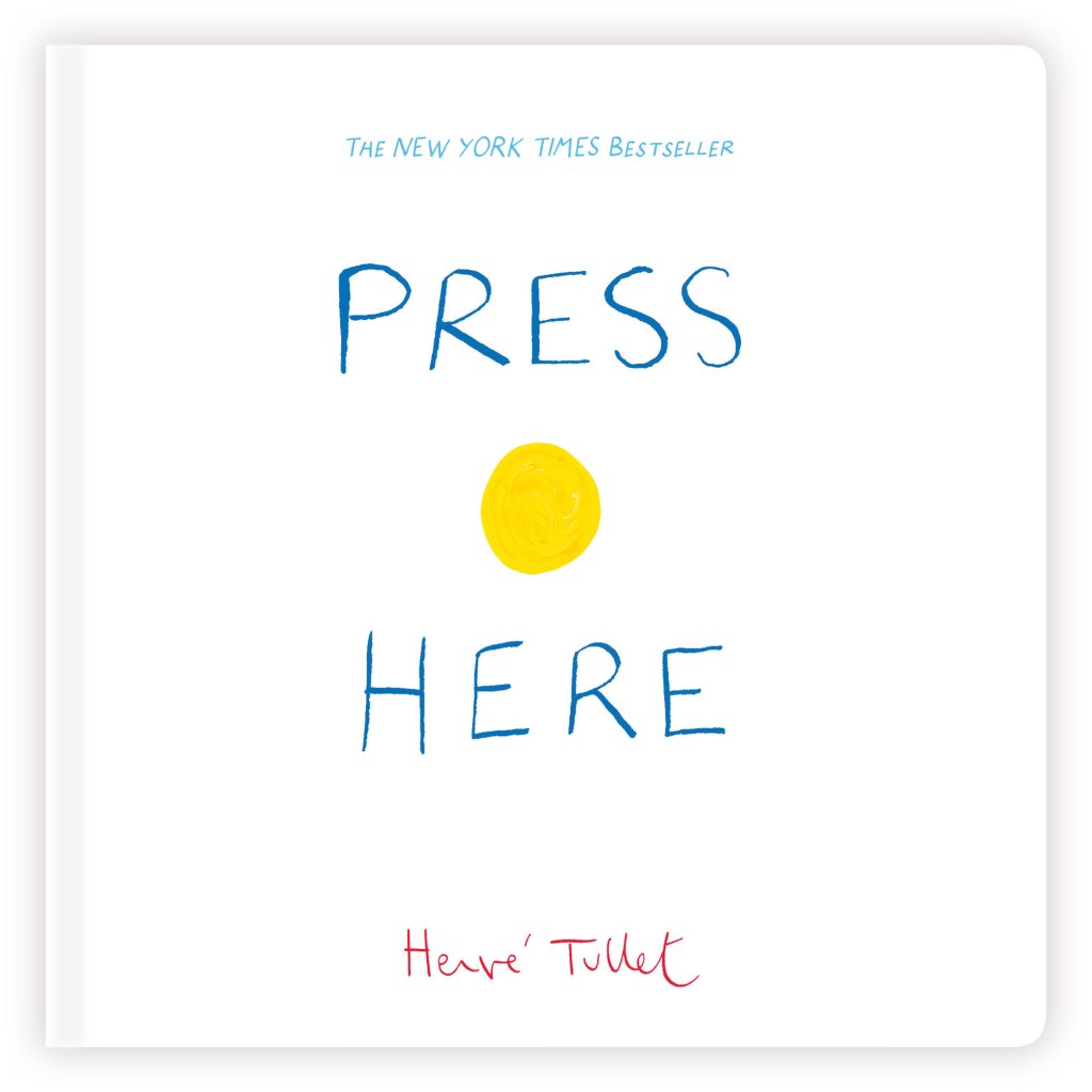 Así que llega el año 2010 y el título que impulsó aún más su trayectoria tomó vida. Se trata de Press Here o Un libro. Durante 20 años Hervé venía perfeccionando su idea de opuestos dialécticos y su principio de interacción narrativa. Para la primera década del siglo XXI empezaron a aparecer las tabletas táctiles así que Hervé se apoyo en los reflejos de los jóvenes lectores que habían aprendido a usar estos dispositivos multimedia para que interactuaran con un punto amarillo en un libro que produce un efecto inmediato de pasar la página, de profluencia. El libro es maravilloso porque anticipa la reacción del lector, la determina con su instrucción. Con esto da la ilusión de que él texto o la historia es quien obedece esas órdenes del lector. La inteligencia de este libro es que antes en el mundo de los libros infantiles no se había propuesto algo similar.