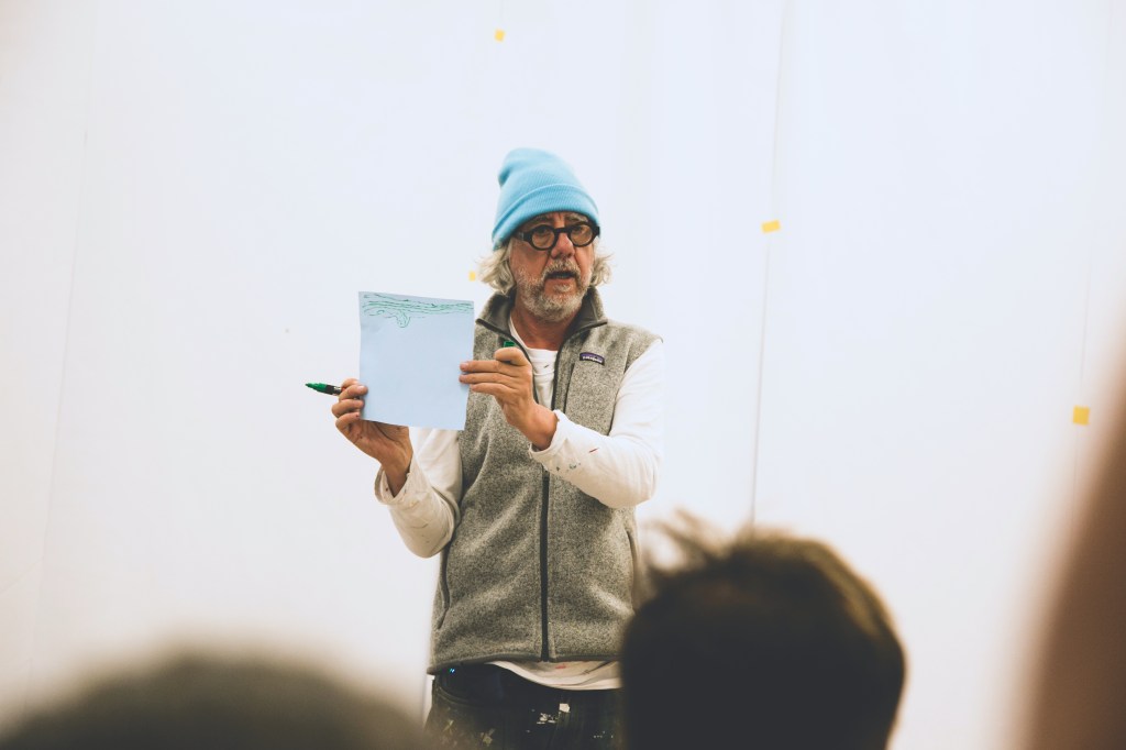 Para hablar de Hervé Tullet, hace falta ponerse un overol, tomar lápices de colores y una hoja de papel para dejar a la mente fluir y sumergirse en el caos maravilloso que implica su proceso creativo. El ejercicio de Tullet a la hora de crear sus libros se trata de liberar a la consciencia de prejuicios o preguntas, es una invitación a la intuición, a las musas de la creatividad para darle vida a ideas que de repente parecen distantes y que solo en el oficio del hacer se manifiestan en orden.